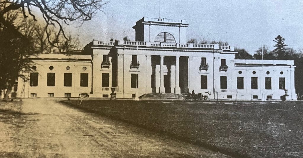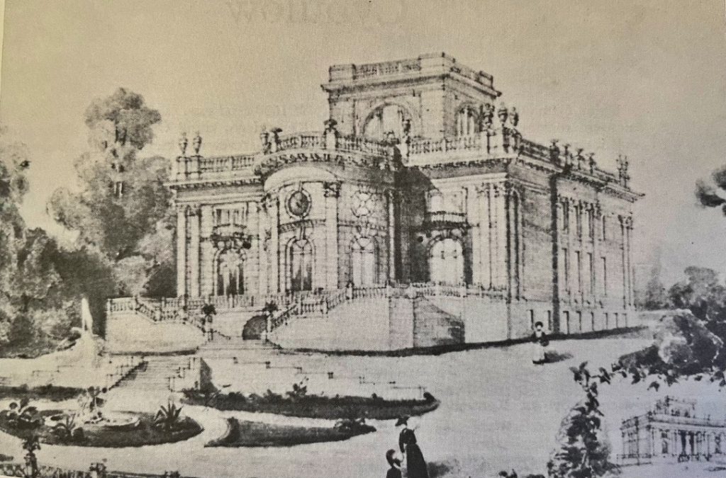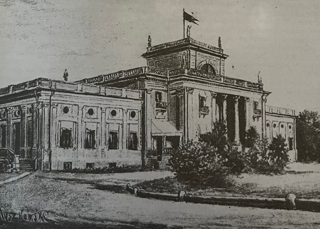 Autorem projektu pałacu był prawdopodobnie – jak podaje niezastąpiony Roman Aftanazy – odeski architekt Władysław Dąbrowski[6]R. Aftanazy, Dzieje rezydencji na dawnych kresach Rzeczypospolitej. Województwo bracławskie, t. 10…, s. 38-39. Pomysłodawczynią wystawienia gmachu wzorowanego na warszawskim Pałacu Na Wyspie – jedynego tego typu przedsięwzięcia na ziemiach ruskich – była Oktawia z Podhorskich Adamowa Zdziechowska. Miała nadzieję, że w pałacu zamieszka jej córka Maria z mężem Alfredem Żurowskim. Oktawia nie doczekała zakończenia budowy. Maria szanując wolę zmarłej matki dokończyła budowę pałacu (został ukończony przed 1908 r.), ale nigdy w nim nie zamieszkała, ani nawet go nie urządziła. Los budynku przypieczętowała Wielka Wojna – został całkowicie zniszczony w 1917 r.