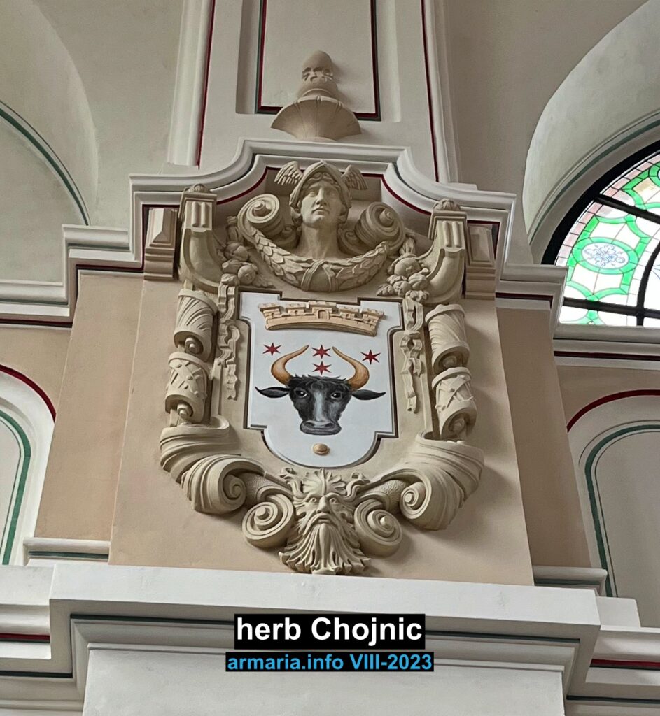 Również forma herbu Chojnic może zaskoczyć współczesnych mieszkańców tego miasta. Co ciekawe, jest to jedna z dwóch funkcjonujących w historii form. Wersja najstarsza, pochodząca z czasów krzyżackich, została potem potwierdzona oficjalnie w 1937 r. przez Ministerstwo Spraw Wewnętrznych RP. Przedstawia: “w polu srebrnym czarną głowę tura ze złotymi rogami i złotym pierścieniem w nozdrzach, między rogami czerwona róża na zielonej łodydze, łodyga z dwoma zielonymi listkami” (Monitor Polski nr 130 z 10 czerwca 1937 r.).