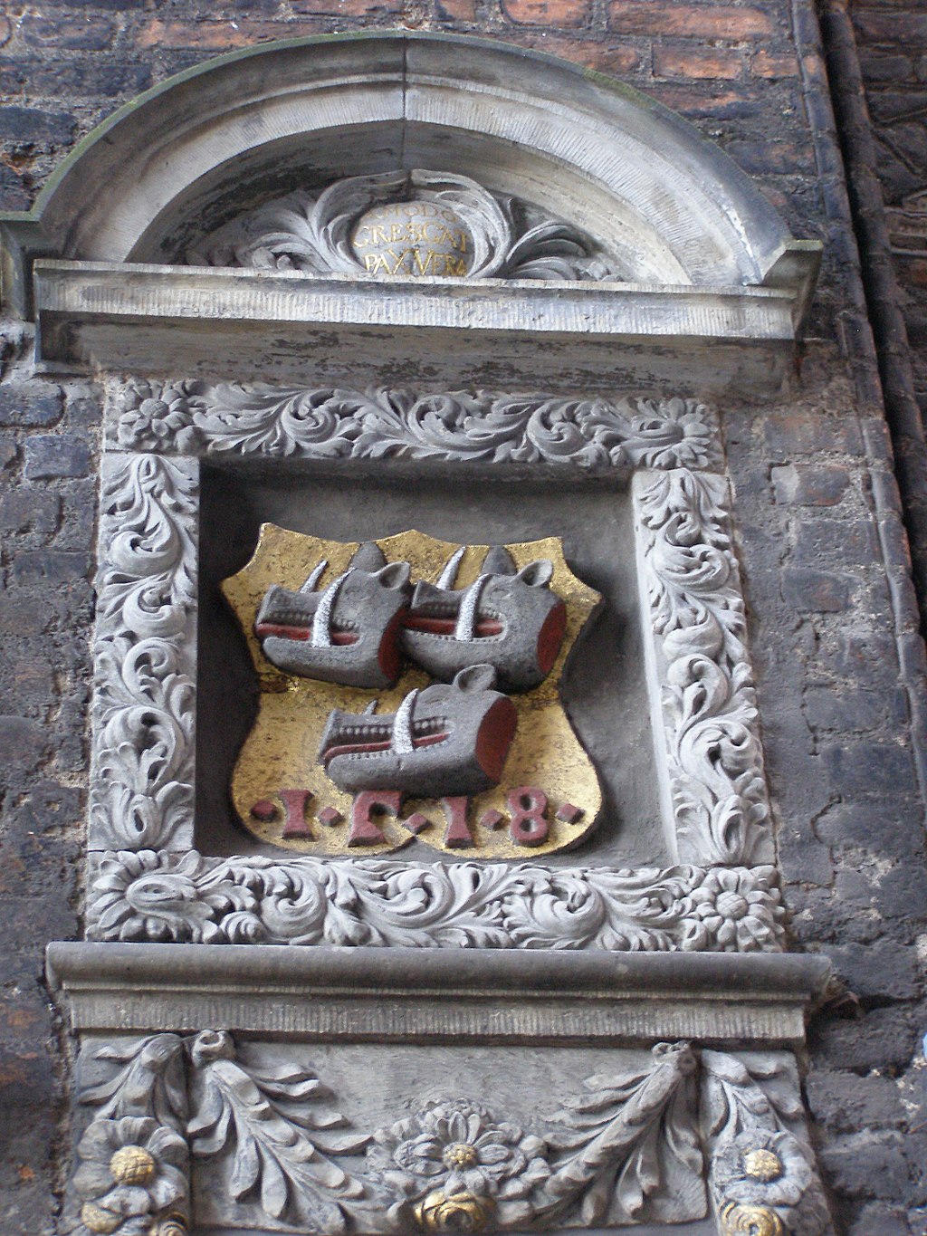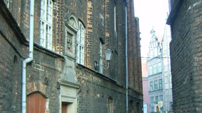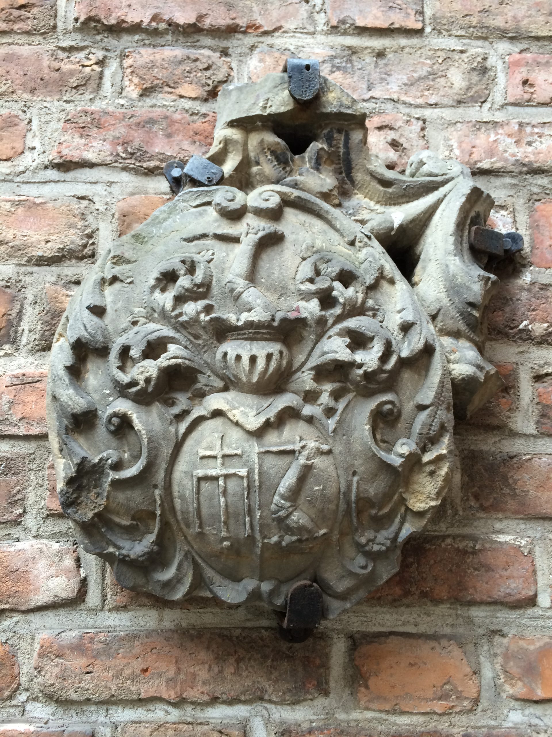 Na ścianach dziedzińca plebanii urządzono jedno z licznych w starym Gdańsku lapidariów gromadzących elementy zabytkowych sztukaterii i reliefowych ozdób kamiennych. Wśród nich znalazło się kilka zabytków heraldyki szlacheckiej Rzeczypospolitej: