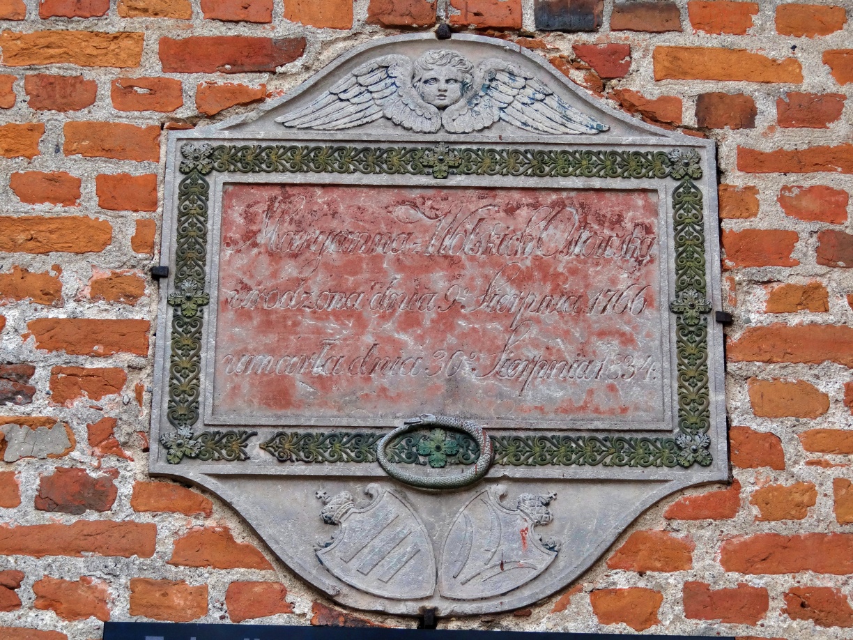 W zewnętrzną ścianę wieży wmurowano klasycystyczne epitafium w obramieniu żeliwnym poświęcone Mariannie z Wolskich Osłowskiej, zmarłej 30 sierpnia 1834.