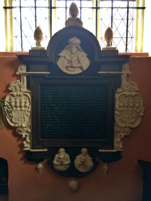 W kaplicy p.w. Wszystkich Świętych, na kamiennej posadzce, widnieje płyta nagrobna z herbem Dołęga (podkowa z krzyżem na barku, a w niej strzała żeleźcem w dół) i częściowo zatartym już napisem: