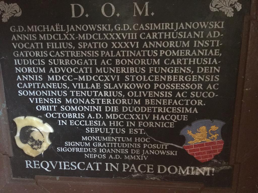 W kaplicy p.w. Wszystkich Świętych znajduje się od niedawna jeszcze jedna tablica epitafijna z ciekawym herbem szlacheckim. Została umieszczona we wnęce, w dolnej części ściany na prawo od ołtarza. Jest to tablica poświęcona Michałowi Janowskiemu (zm. 1724) synowi Kazimierza, wójtowi klasztoru Kartuzów, staroście stolcenberskiemu (polskim odpowiednikiem niemieckiej nazwy Stolzenberg była w czasach Rzeczypospolitej Nowa Górka; dzisiaj obszar ten jest dzielnicą Gdańska noszącą po 1945 r. nazwę Chełm).