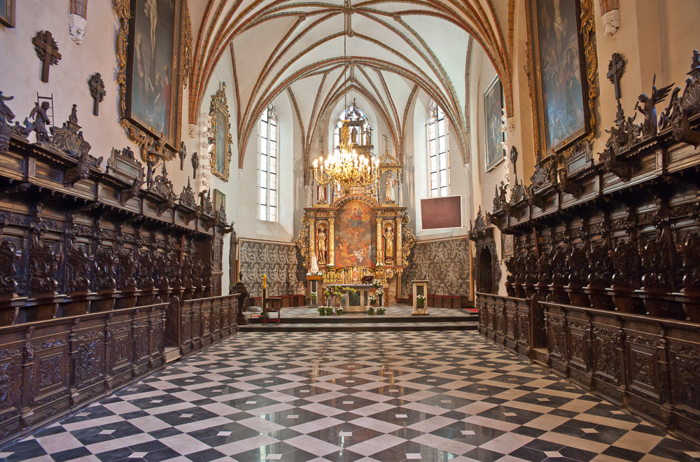 Niewątpliwym powodem do dumy jest dla mieszkańców kartuskiego grodu przepiękny XIV-wieczny zespół poklasztorny zakonu Kartuzów – fundacja Jana z Rusocina (Różęcina). Patronką kościoła, który został podniesiony do rangi kolegiaty jest — tak jak niegdyś całej kartuzji — Najświętsza Maria Panna. O znaczeniu i wartości zespołu poklasztornego, jako unikatowej perły architektonicznej, świadczy również fakt, iż jest to jedyny tego typu zabytek w Polsce. W przeszłości na ziemiach polskich istniały także inne klasztory kartuzów. Niestety, niektóre z nich uległy w ciągu wieków zupełnemu zniszczeniu (np. w Gidlach w Małopolsce), a pozostałe po II wojnie światowej znalazły się poza granicami Polski (jak klasztor w słynnej Berezie Kartuskiej kojarzonej dziś z zupełnie innymi faktami historycznymi – na Białorusi).