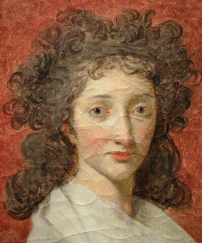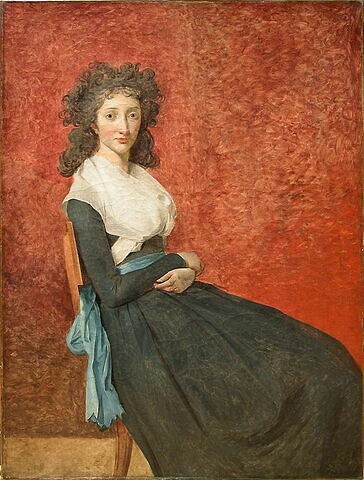 Ten portret przykuł mój wzrok od pierwszego spojrzenia. Przedstawia przerażoną kobietę w skromnym ubraniu, pozbawioną biżuterii i innych ozdób, z niedbałą fryzurą, z dłońmi złożonymi na podołku w geście wyrażającym niepewność lub zagrożenie, ukazaną na niepokojącym czerwonym tle. Powstał w latach 1791 – 1792. Jest przejmującą ilustracją krwawego okresu rewolucji.