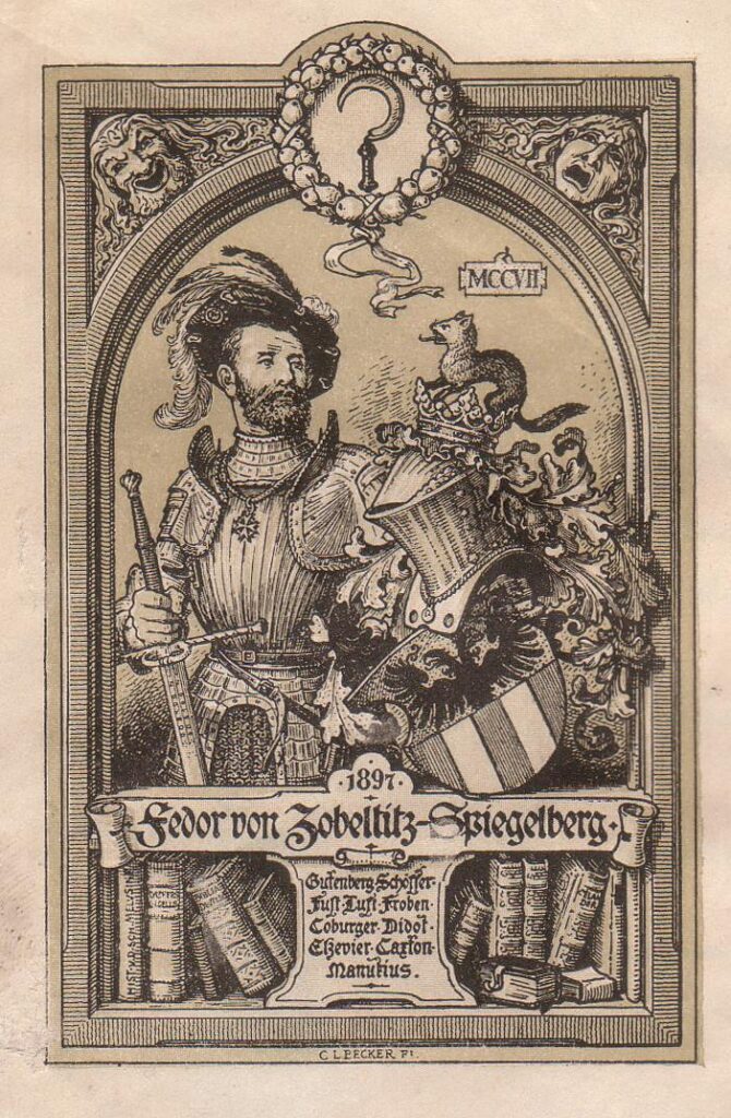 Ekslibris Fedora von Zobeltitz [autor: Carl Leonhard Becker (1843-1917), Public Domain]