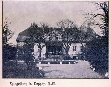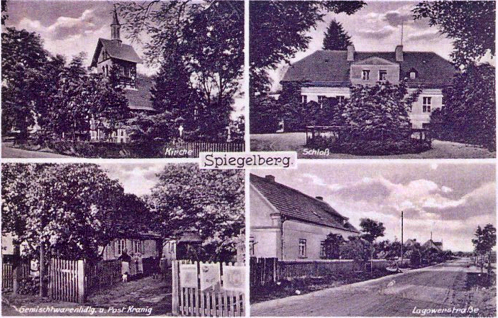 Przedwojenna pocztówka z miejscowości Spiegelberg. W prawym górnym rogu dwór Fedora von Zobeltitz [źródło: Oststenberger Heimatbrief 2003, nr 1]