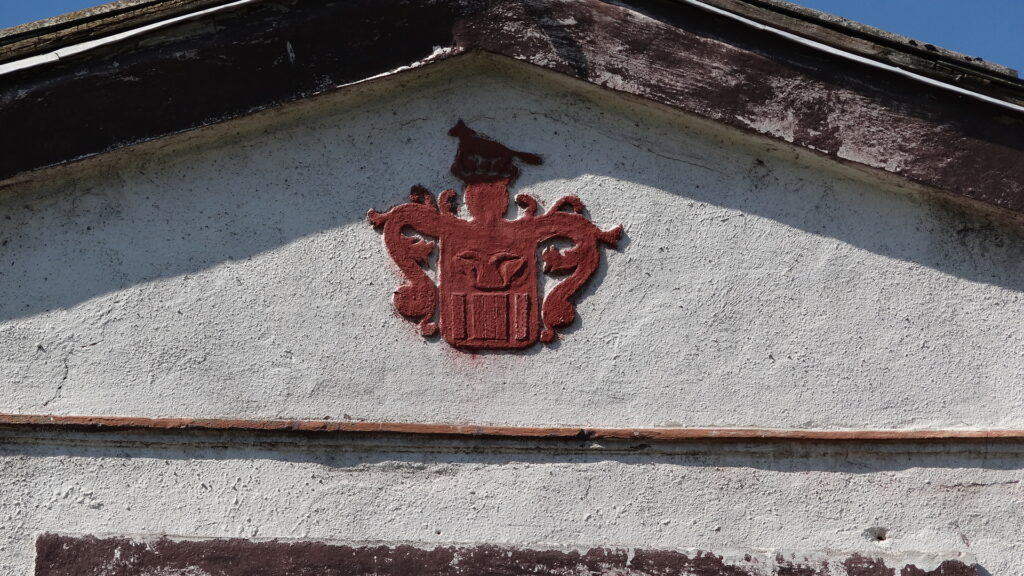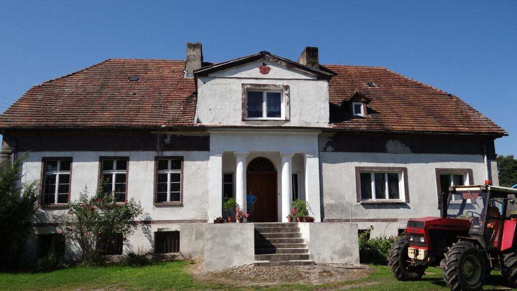 Bliższa analiza historii miejsca i samego zdobienia pozwoliła na pozytywną weryfikację mojego przeczucia. To dawny dworek niemieckiej rodziny szlacheckiej von Zobeltitz. Obecni właściciele domu, jak wielu okolicznych mieszkańców, przybyli na te tereny po wojnie, dokładnie – w latach 50. XX wieku. Zastali dom w stanie częściowo spalonym i zrujnowanym. Postanowili go odbudować i wyremontować w ramach skromnych, powojennych możliwości, w warunkach powszechnego niedoboru. Wstawili nowe okna, zamurowali inne, przebudowali wejście. Zapytani o herb na tympanonie obecni właściciele opowiedzieli mi, że kiedy obejmowali budynek herb był ledwie widoczny, zamalowany. Wzbudził jednak zainteresowanie jednego z członków rodziny, który uznał, że to element ozdobny i że zasługuje na zachowanie. Oczyścił dekorację [widać, że już wówczas musiał być poważnie uszkodzony – szczegóły reliefu są zatarte] i pomalował ją na kontrastujący ze ścianami kolor. I tak pozostało do dzisiaj. Nikt z mieszkańców nie znał wcześniejszej historii budynku.