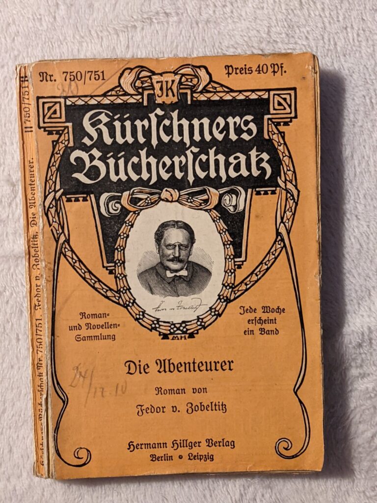 Fedor w swojej bibliotece – zdjęcie z oryginalnym autografem pisarza [Źródło: Gustav Adolf Erich Bogeng: „Rocznik biblioznawstwa i hobby” Harrwitz, Berlin 1909; de.wikipedia.org]