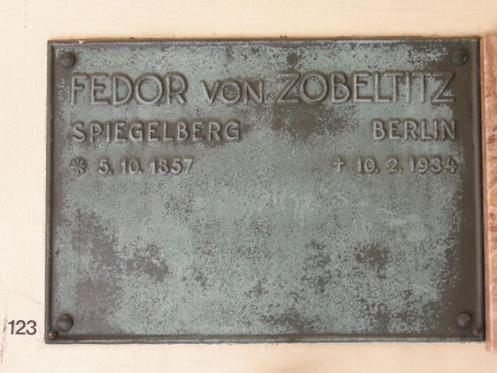 Fedor von Zobeltitz zmarł w 1934 r. i został pochowany w Berlinie-Wilmersdorfie. Był dwukrotnie żonaty. Pozostawił dwoje dzieci. Syn, Heinz był malarzem i pisarzem. Wyemigrował do Argentyny, gdzie zmarł na raka dwa lata po śmierci ojca w 1936 r. W 1945 r. wydano w Buenos Aires jego książkę opisującą… dom rodzinny w Spiegelbergu. Córka – Hilde Stein-von Zobeltitz także była pisarką.