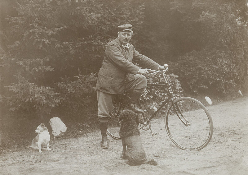 Na przejażdżce rowerem i z psami – zapewne gdzieś w Spiegelbergu/Poźrzadle.  Źródło: Münchner Stadtmuseum, Sammlung Fotografie, Archiv Kester [CC BY-SA 4.0]